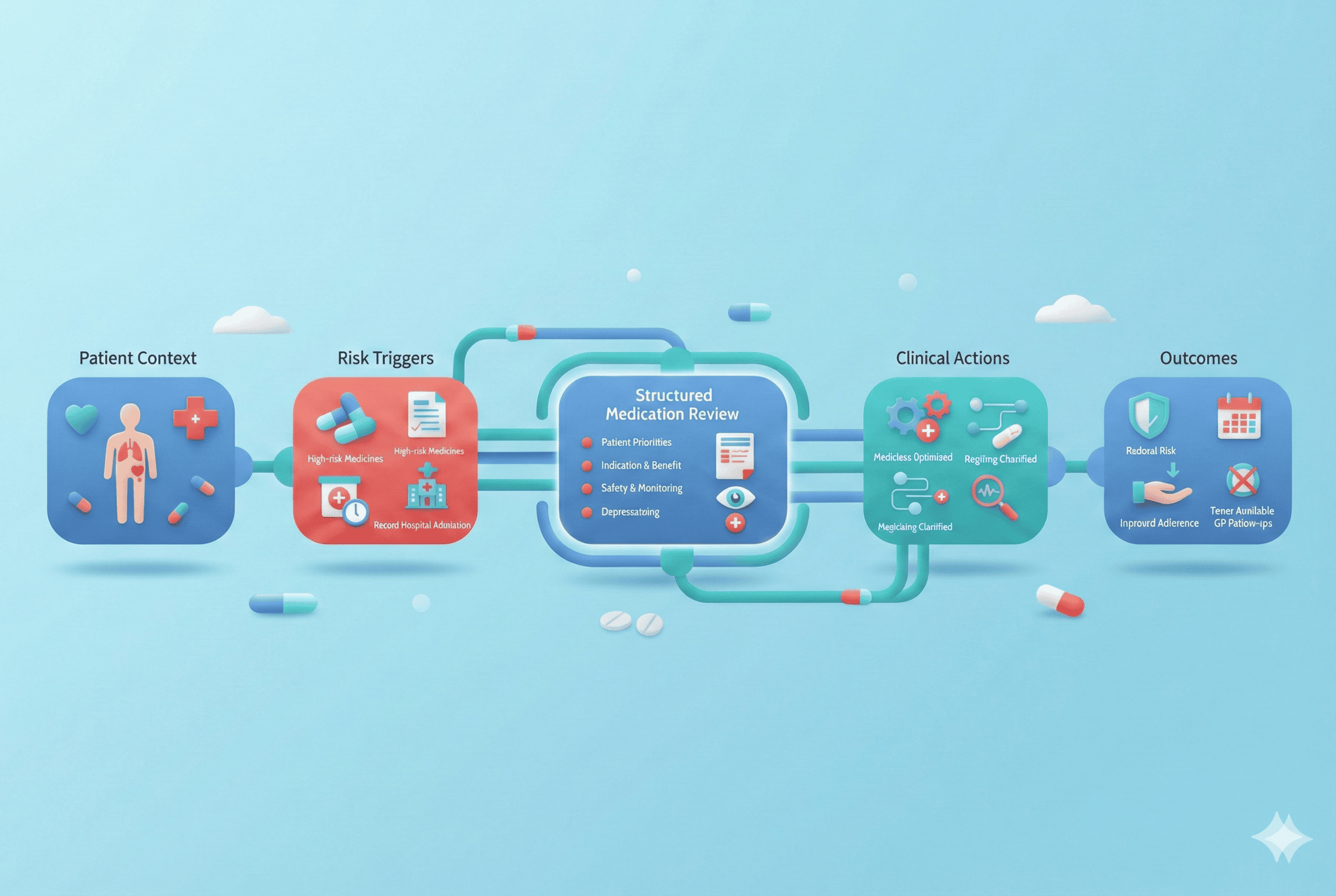 A structured medication review is only valuable if it leads to real clinical decisions. When reviews focus on risk, outcomes and patient priorities, they reduce harm and prevent work recycling back to already stretched GP teams.